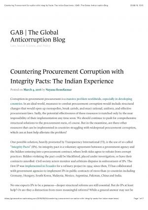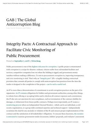 Here is a selection of guidelines/toolkits and other written resources on Integrity Pacts. Below the selection is a fuller list of publications by members of the Basel Institute on Governance, partner organisations and others involved in Integrity Pacts.